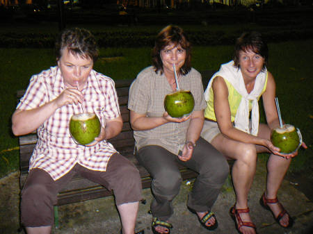 Nach dem Mittagessen (es gibt Leckeres vom Grill) nutzen wir die Gelegenheit und gehen alle erst einmal baden. Im Verlauf des Nachmittags unternehmen wir noch einen kurzen Ausflug in den Dschungel, wo wir uns verschiedene Urwaldriesen (riesige Cedurana) anschauen. Die Bäume haben rießige Ausmaße; sie haben einen Durchmesser von meheren Meteren und sind bis zu 40 Meter hoch. Schade ist nur das ein Großteil der Urwaldriesen hier schon abgeholzt ist und wenn man bedenkt das diese Bäume weit über hundert Jahre brauchen um diese Größe zu erreichen und es lange dauern wird bis die kleineren Bäume wieder so weit sind.